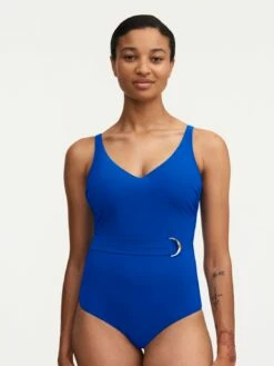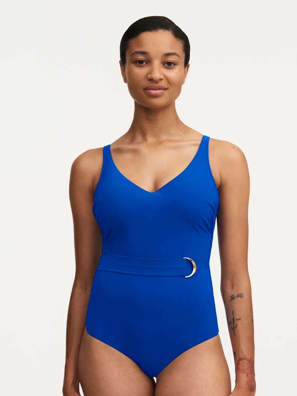 Badeanzug mit tiefem Ausschnitt von Chantelle mit einem starken Futter und Drapierungseffekt auf der Vorderseite für eine raffinierte Figur.