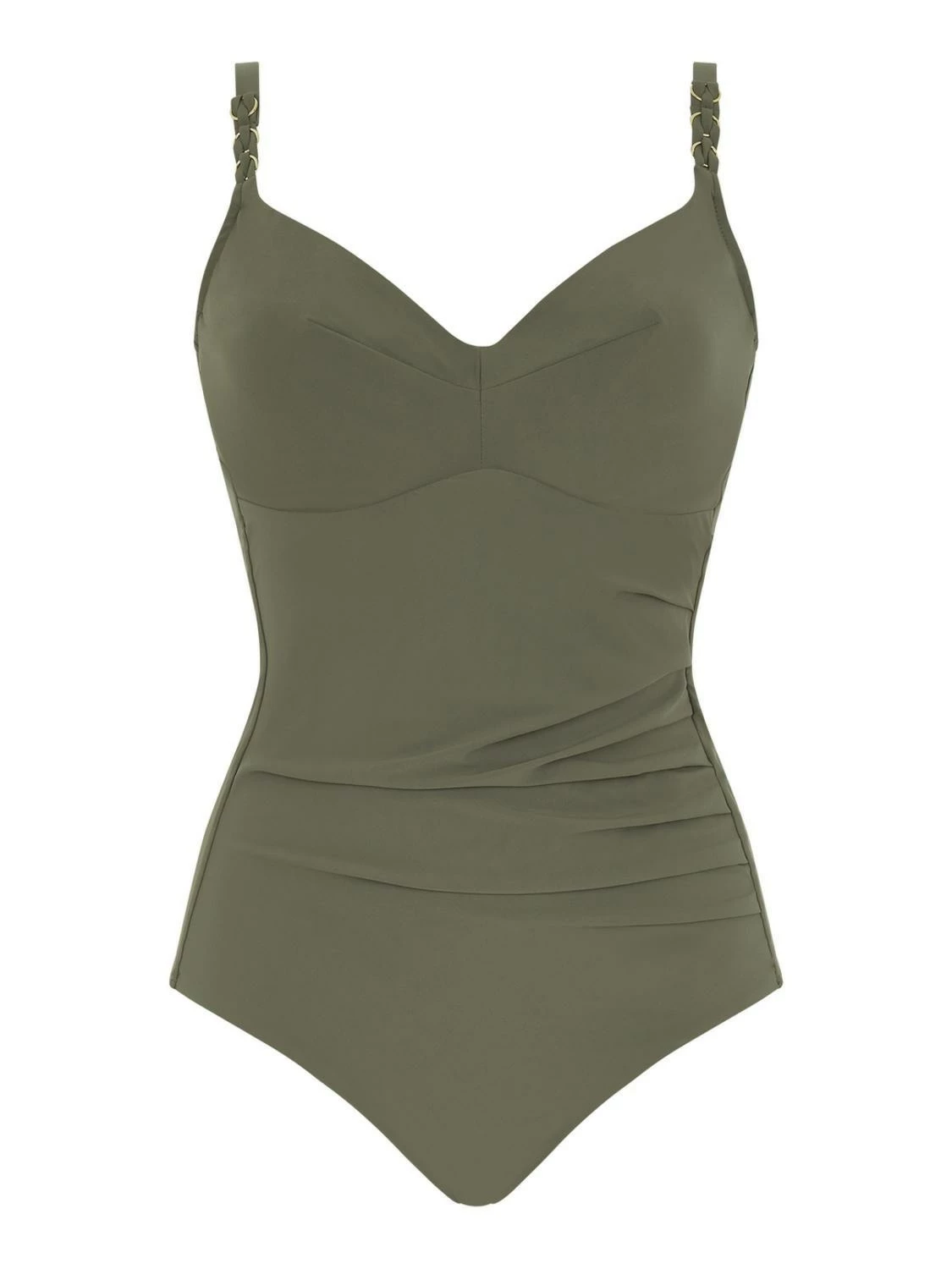 Badeanzug von Chantelle mit einem nahtlosen Ausschnitt und verstellbaren Riemen und Schmuckelementen an den Trägern.