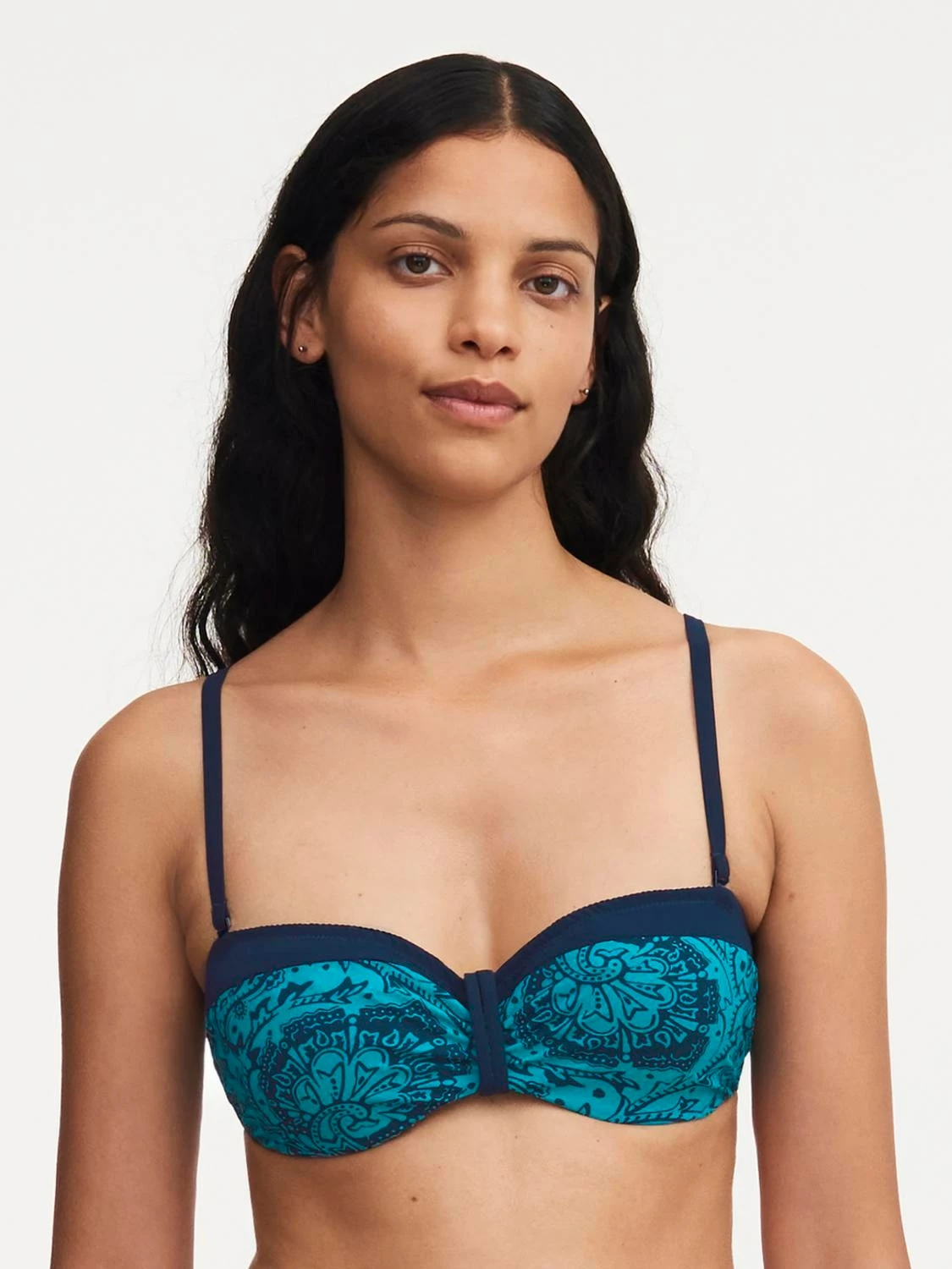 Bikini Bandeau BH mit abnehmbaren Trägern von Chantelle mit einem femininen und modernen Ausschnitt. Verrutscht nicht auf der Haut, durch die Silikonträger.