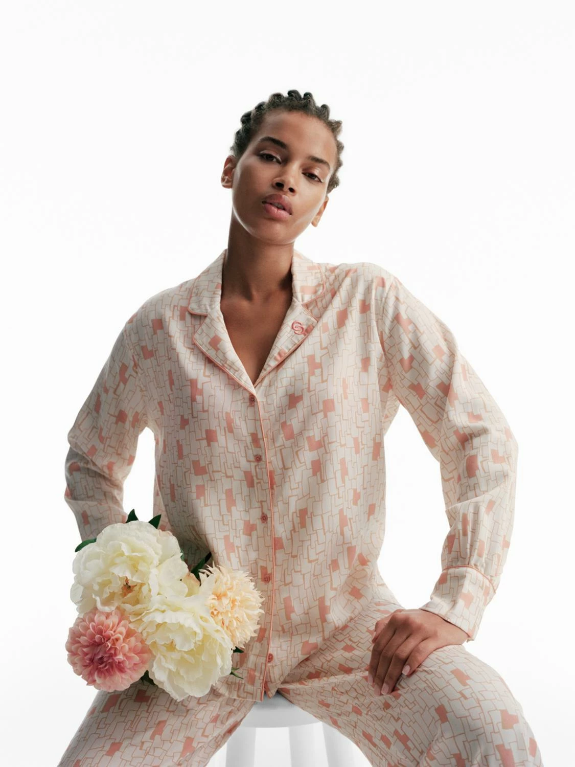 Langarm-Shirt von Chantelle aus Tencel mit einem gesticktem ‚Chantelle‘-Logo am Kragen.