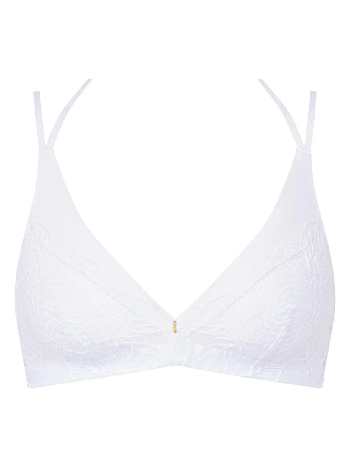 Bügelloser BH von Chantelle mit einer Kombination aus floraler Spitze und leichtem Tüll sowie gekreuzten Trägern im Rücken, für einen femininen Look.