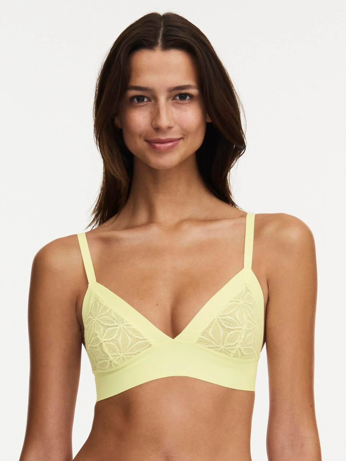 Bügelloser BH mit V-Ausschnitt und Spitzendetails.