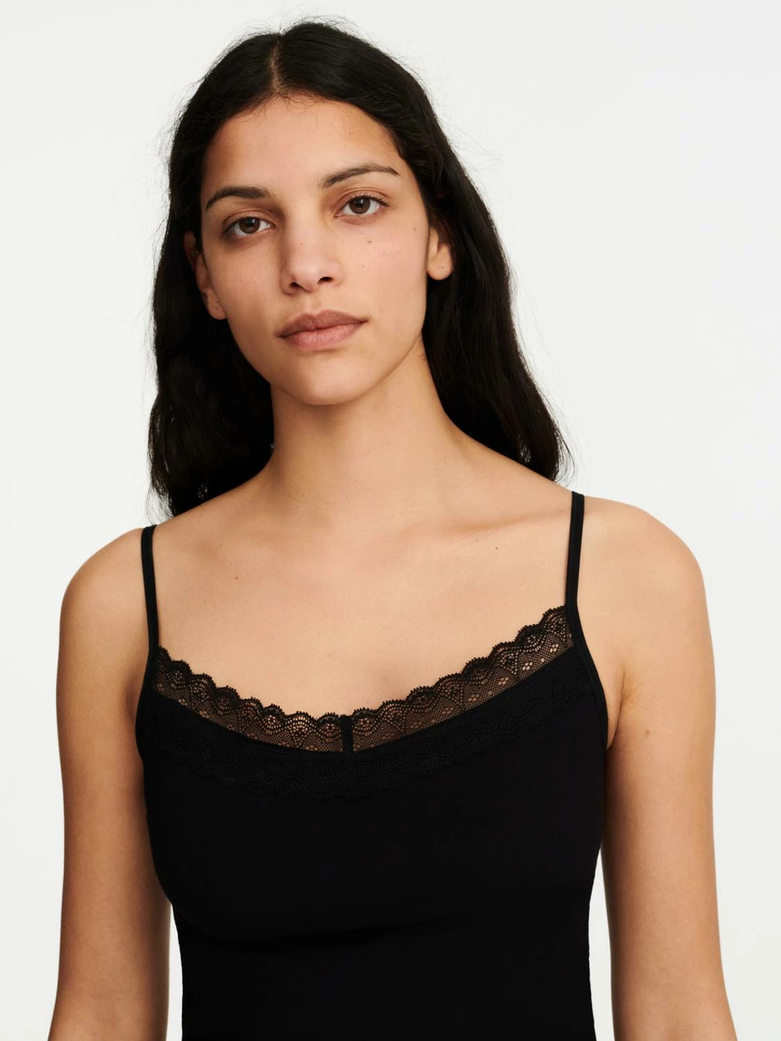 Trägertop von Femilet mit Spitzenbordüren entlang des Dekolletés und angenehmem Baumwoll-Material.