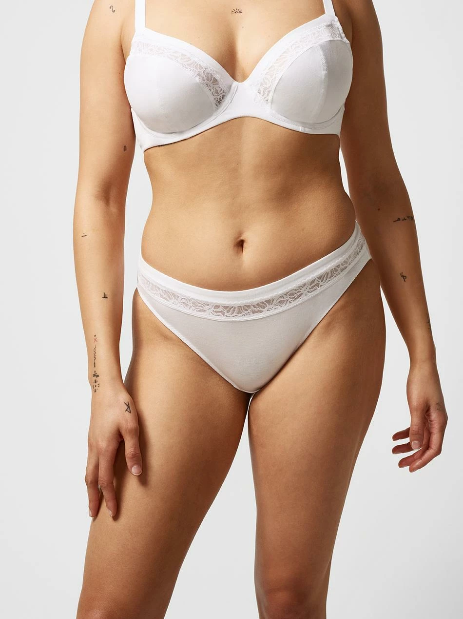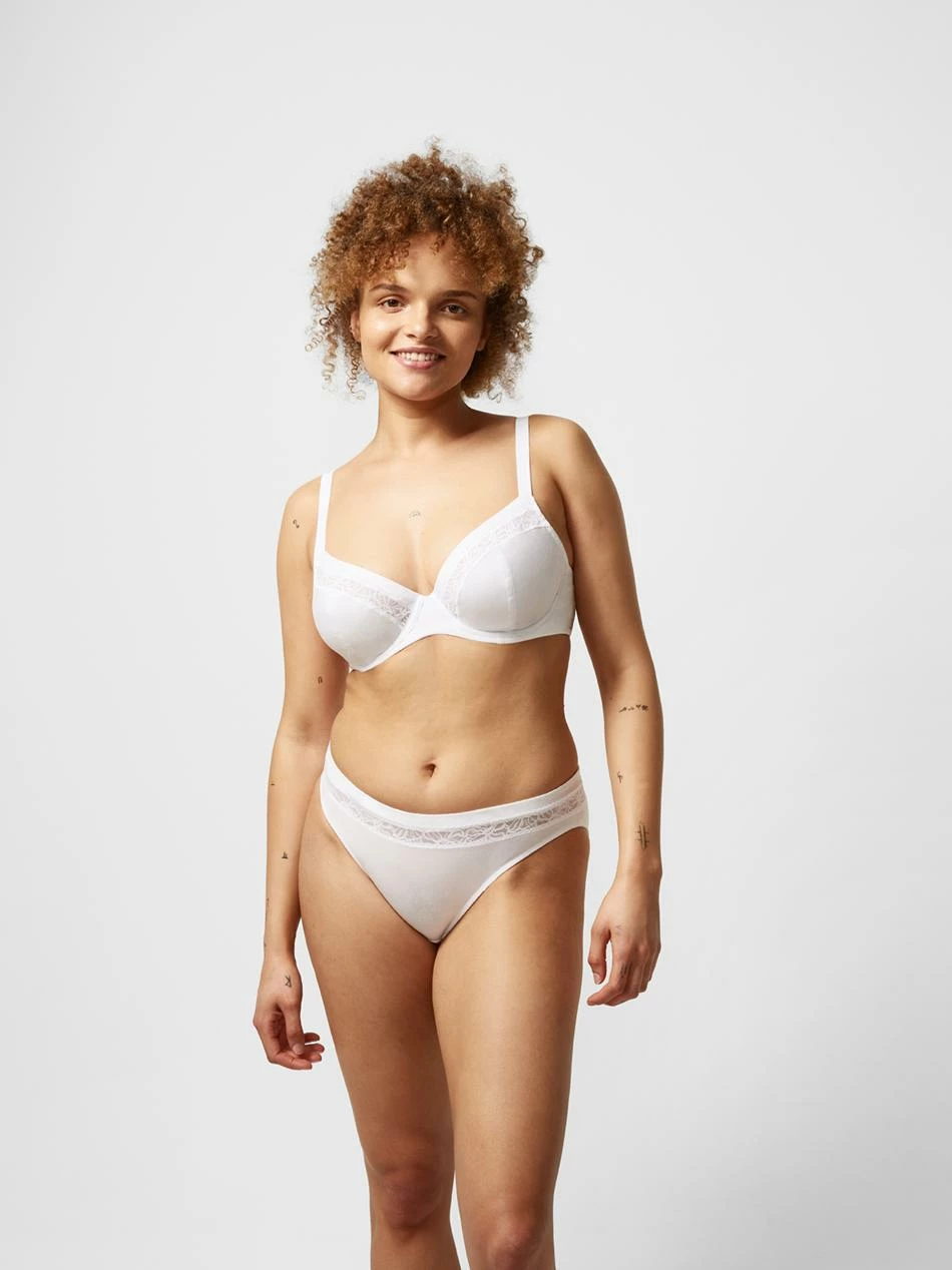 Blickdichter Slip von Femilet mit Spitzeinsatz an der Taille und aus 63% recyceltem Material.
