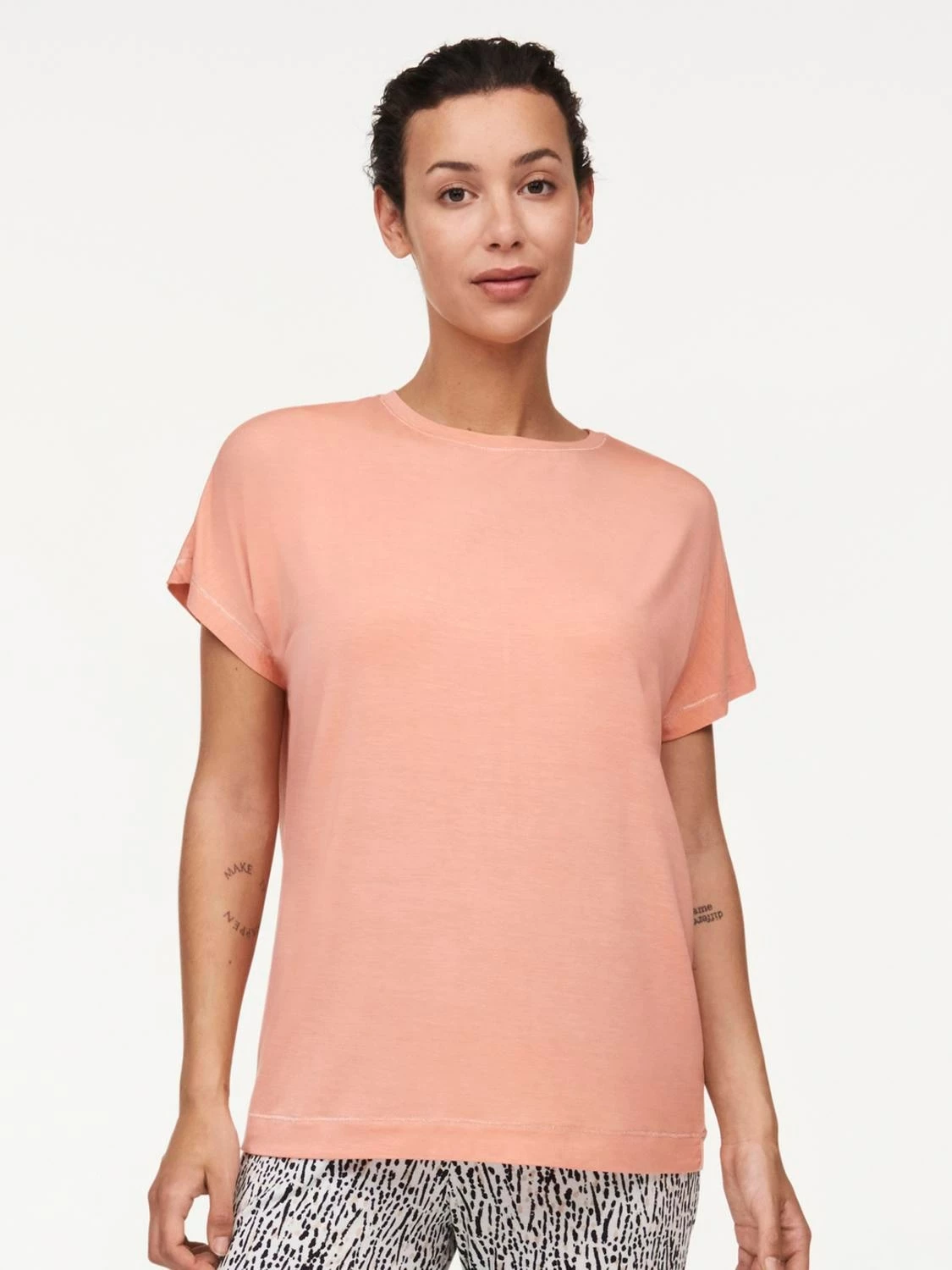 T-Shirt von Femilet mit kurzen Ärmeln und rundem Halsausschnitt aus ultra weichem Material.