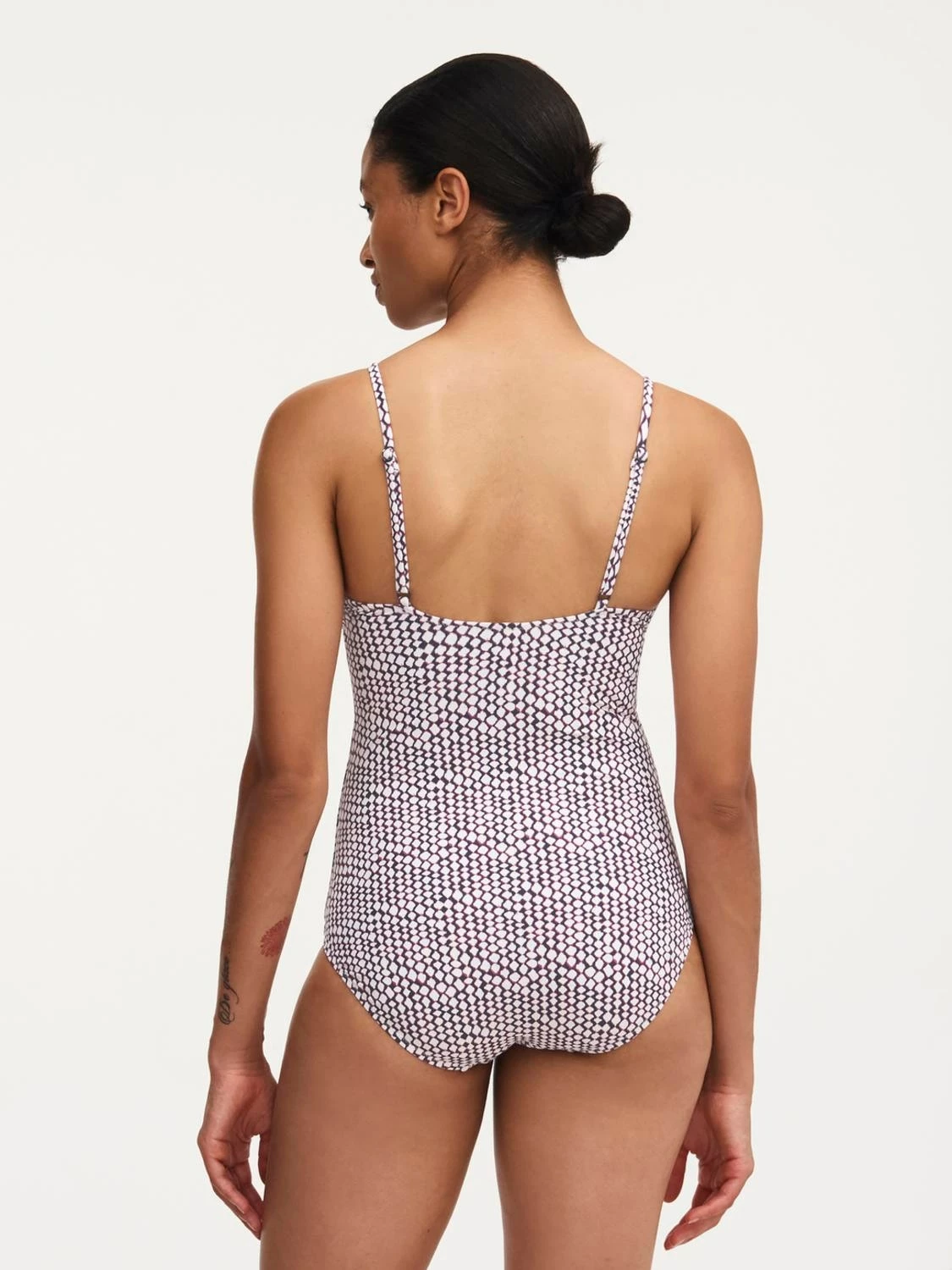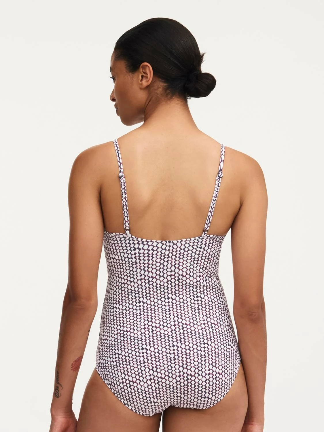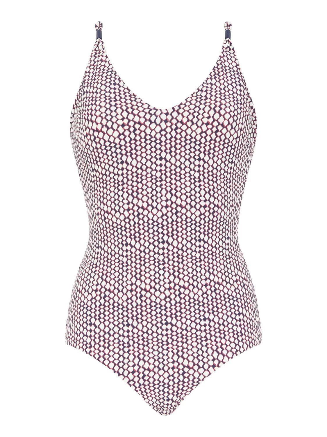Bügelloser Badeanzug von Femilet mit tiefem Ausschnitt und einem großen Gummizug unter der Brust für einen guten Halt.