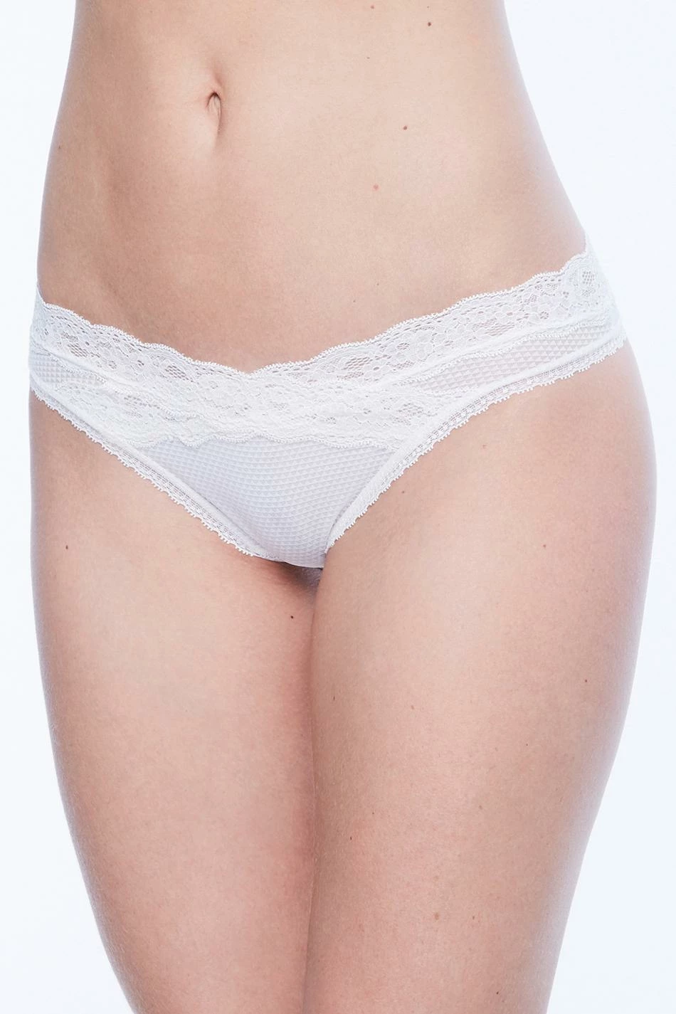 Tanga von Passionata mit Spitzenverzierung am Bund. Vorne blickdicht, hinten leichte Transparenz.