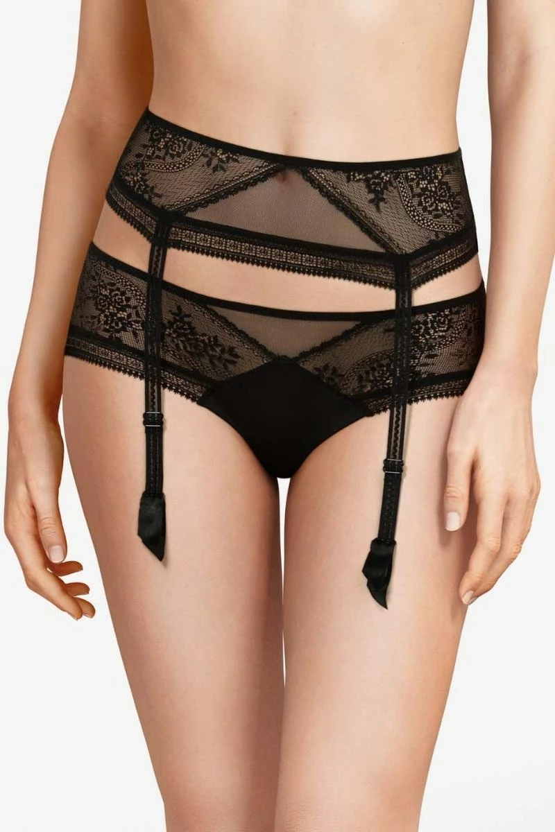 Ausgefallenes Strumpfband von Passionata aus floraler Spitze und Netzstoff.