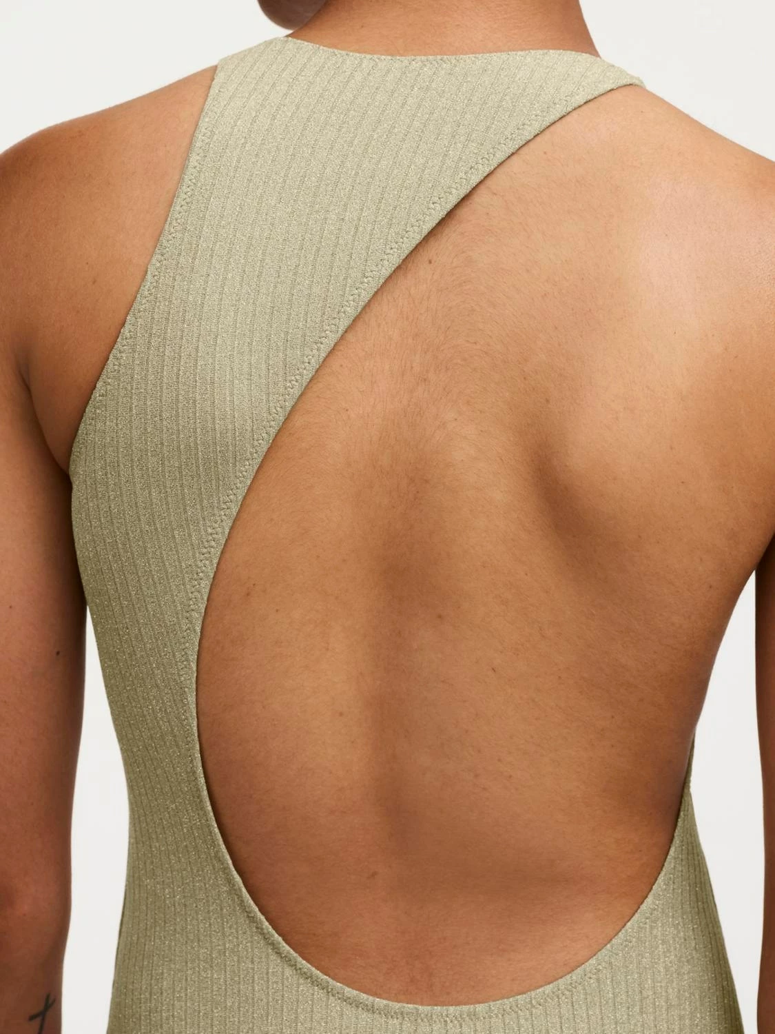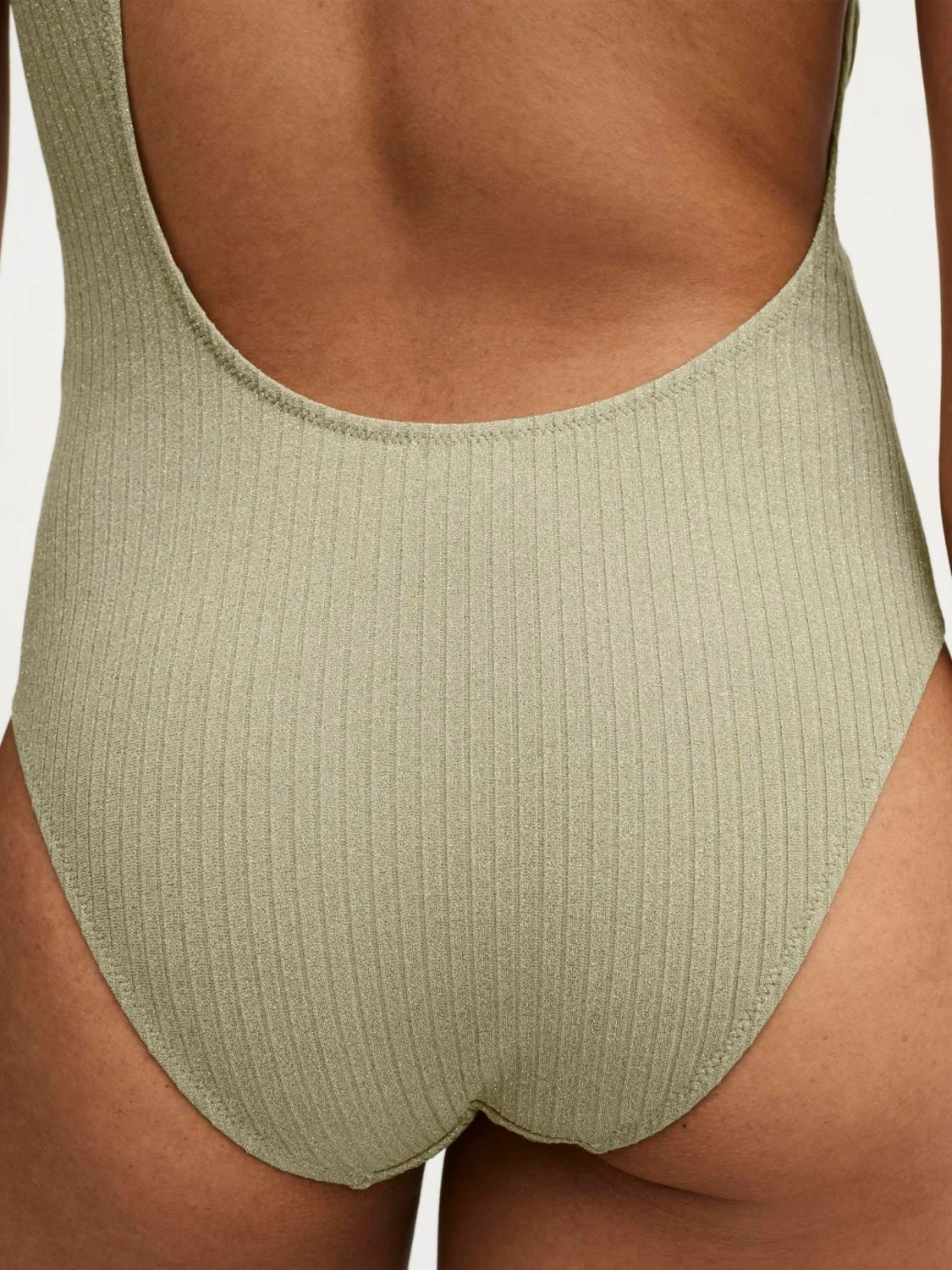 Bügelloser Badeanzug von Passionata mit asymmetrischen Trägern und einem offenen Rücken.