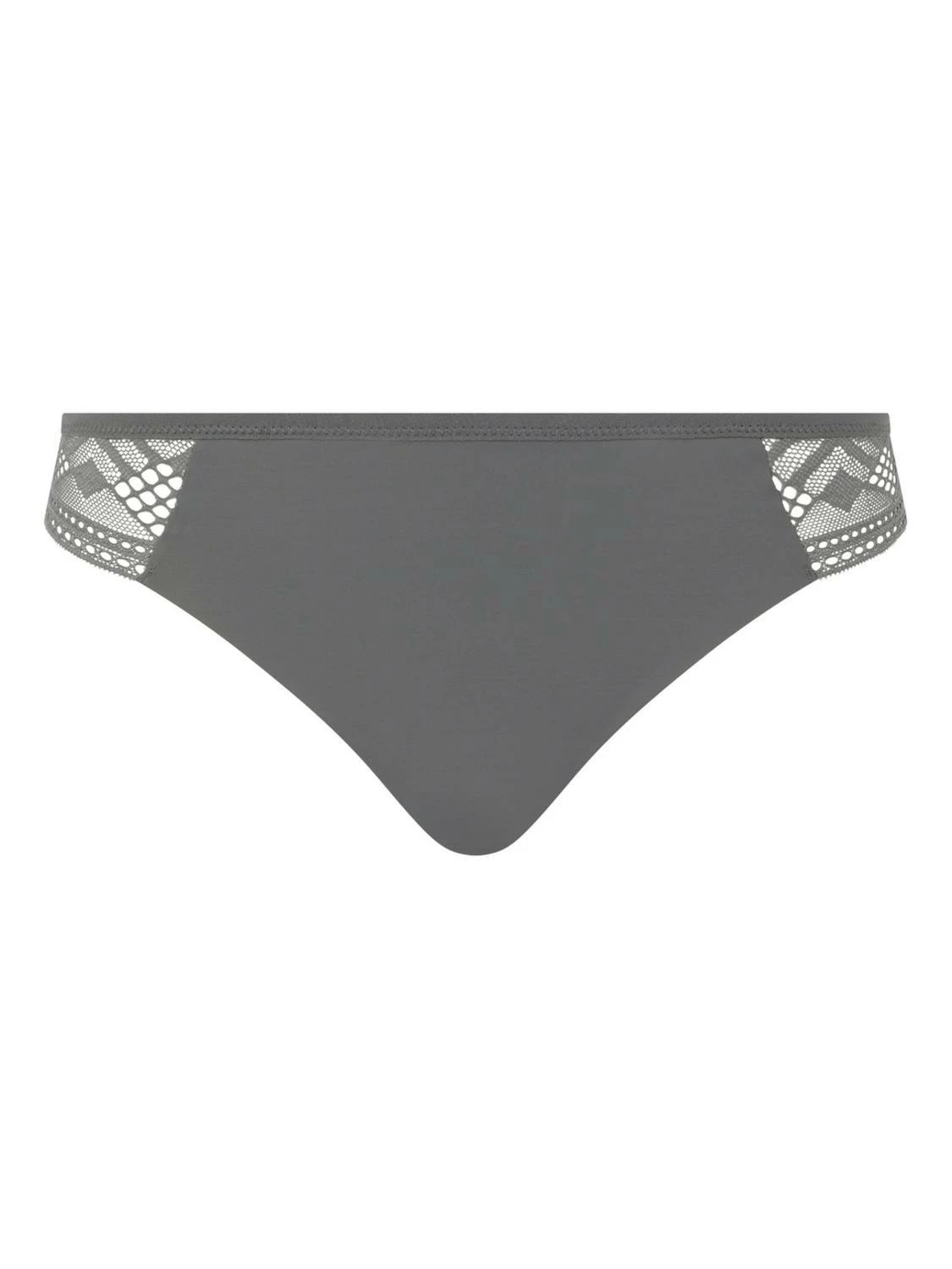 Tanga von Passionata mit einem modernen Design aus grafischer Spitze, kombiniert mit blickdichtem Material im vorderen Bereich.