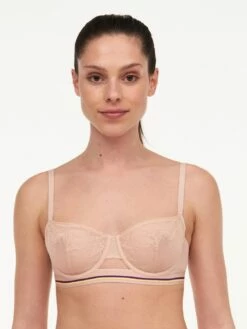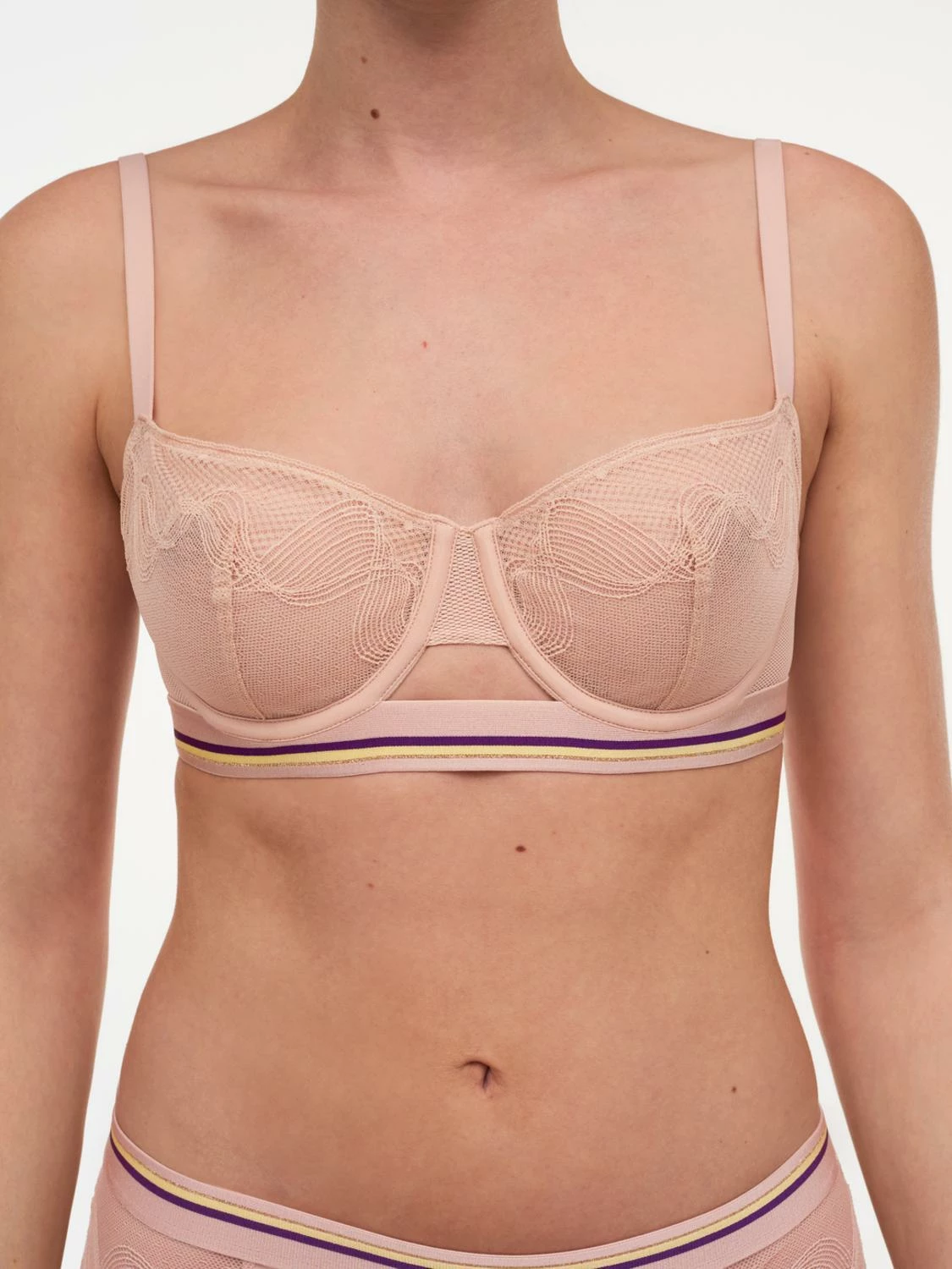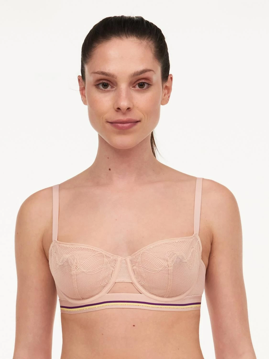 Außenträger-BH von Passionata halber Körbchengröße für eine gehobene Brust und ein verführerisches Dekolleté. Das Körbchen besteht aus Spitze und der BH hat ein elastisches Unterbrustband mit geometrischen und mehrfarbigen Linien.