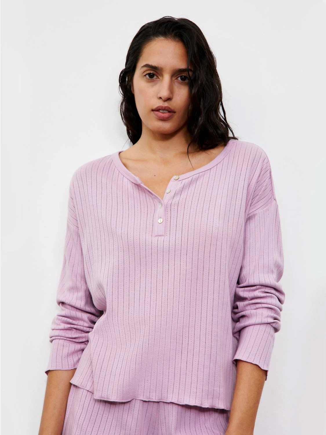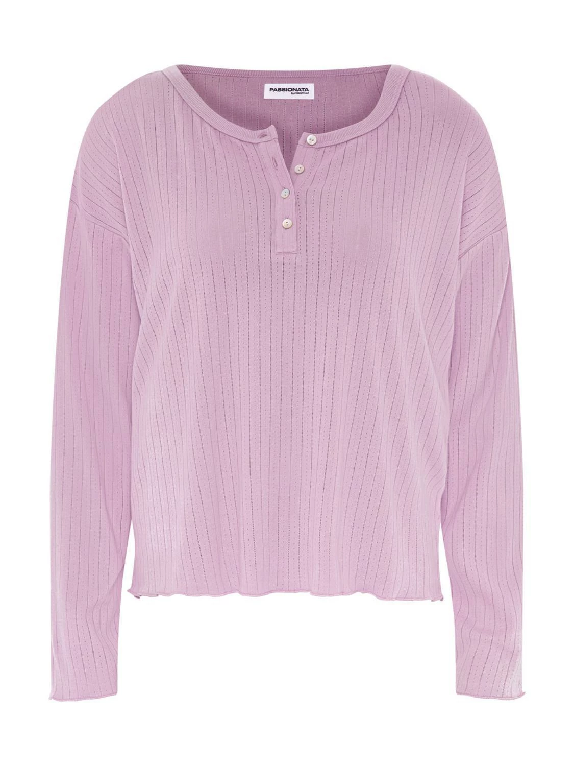 Langärmliges T-Shirt aus Bio-Baumwolle von Passionata mit leicht offenem Muster und einem runden Kragen. Verleiht ein angenehmes Tragegefühl.