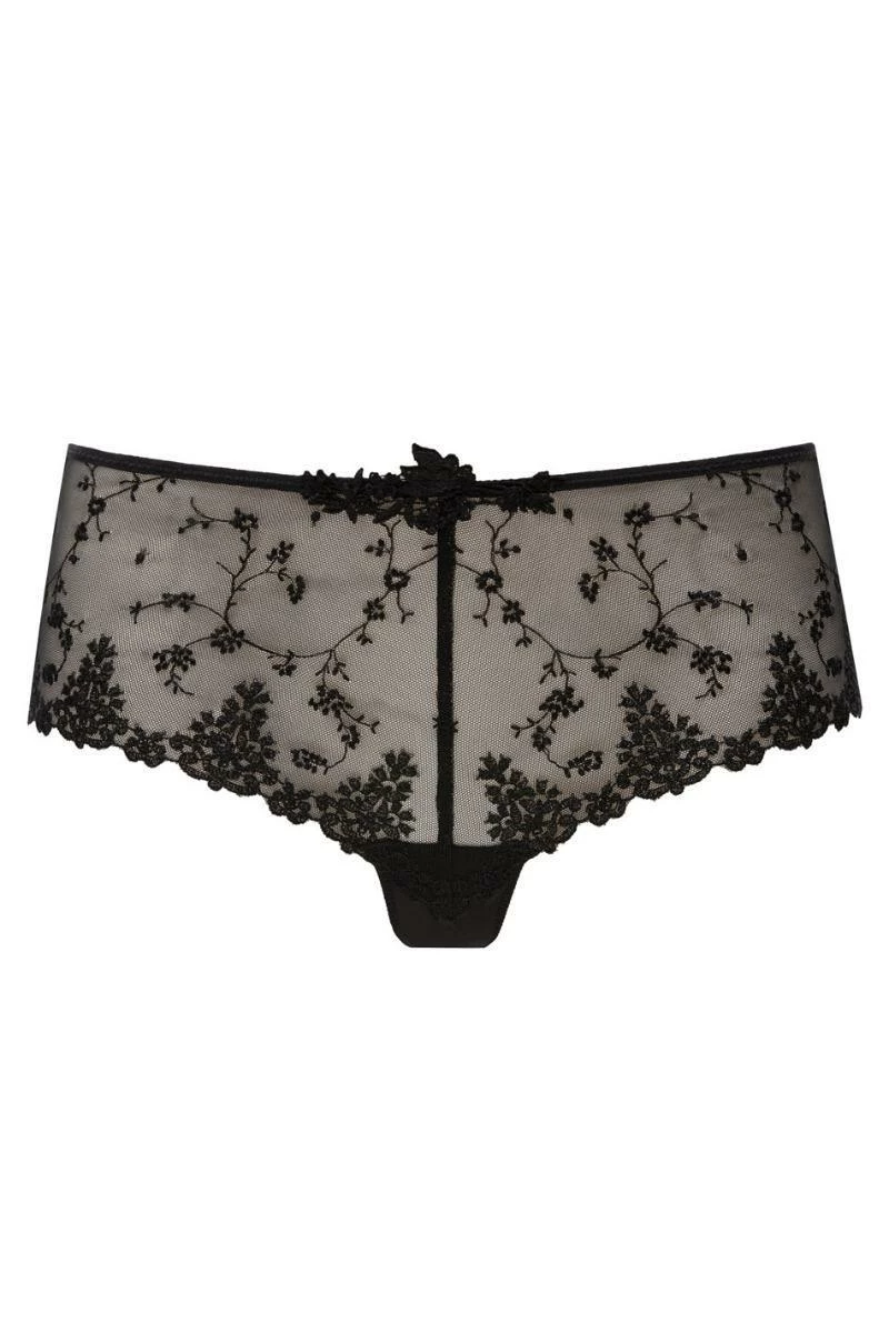 Bestickter Shorty von Passionata mit Tüll und Guipure an der Taille. Hinten String-Effekt für Unsichtbarkeit unter eng anliegenden Kleidern und Hosen.